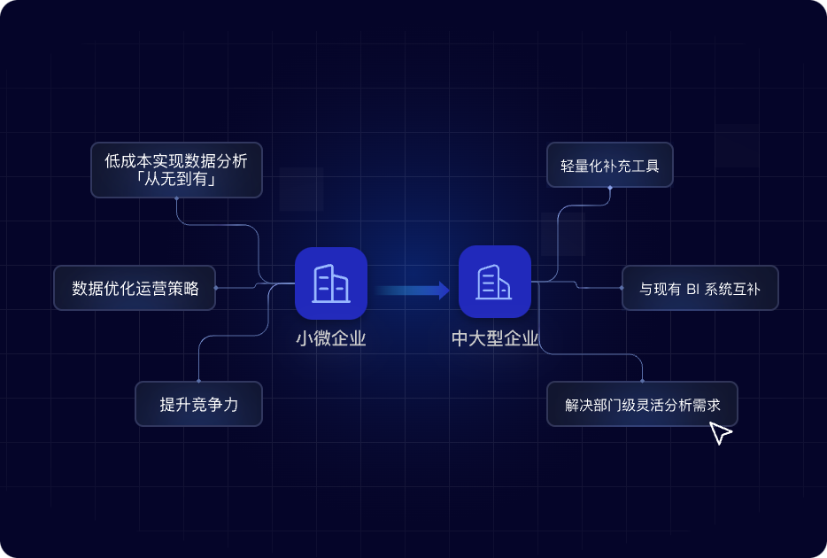 中大型企业:作为轻量化补充工具,与现有 BI 系统形成互补,解决部门